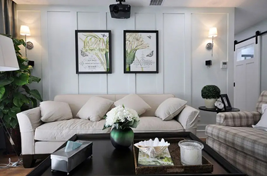 設計亮點:現代簡約的沙發背景墻設計,茶幾選用最簡易的設計,但卻不失小巧玲瓏視覺感。這個沙發看起就給人非常溫馨舒適的感受,背景墻沒有復雜的設計,采用的是石膏板做扣線,搭配上簡單的裝飾物,讓整體的效果大大提升。