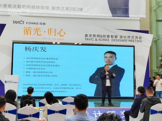 泰沃照明副總經理楊慶發作為主講嘉賓,分享了泰沃照明最新推出的智能家居照明產品以及他在照明設計領域的心得和經驗。他的演講內容深入淺出,讓現場的設計師們對智能照明的技術和應用有了更全面和深入的了解。